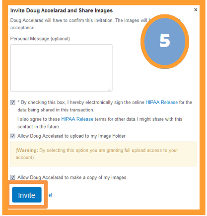 5. Check all boxes and click Invite to share your image. The recipient must confirm to view it.